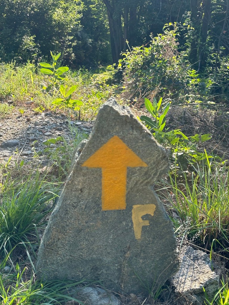 The second episode of “trail magic” occurred roughly an hour after lunch as Gabe and I were chatting away winding our way through a small hamlet and around a vineyard and winery when we passed right by our trail’s next turn. No more than 15 feet past our errant oblivion to the turn, a young man bolted out of the storehouse of a neighborhood winery to direct us downhill (literally through two grape vines on a recently mowed stretch of grass) to the Via Francigena path. Other than Andrea just prior to lunch and a few passing pleasantries with locals (“Bongiorno!”), we’d seen no one prior to this encounter. We were very grateful for this young man’s help.