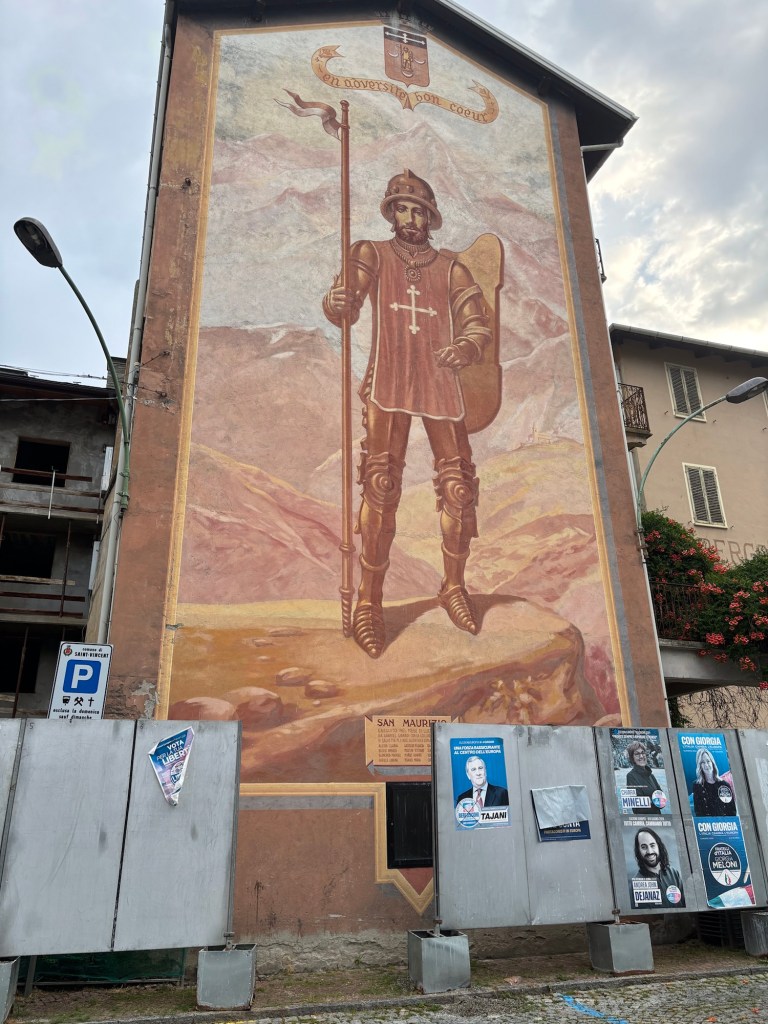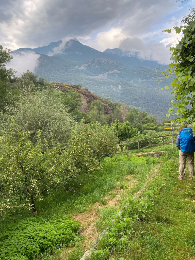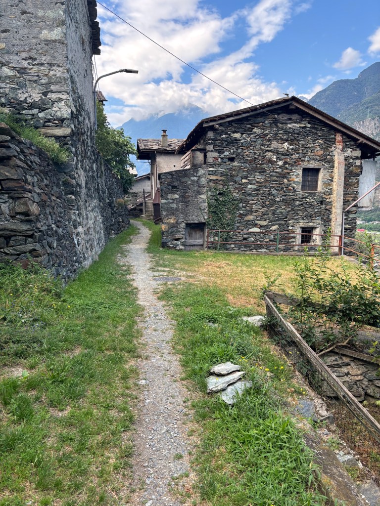 We left our campsite around 7:15 a.m. and made our way up the hill and out of the town of St. Vincent and back onto the Via Francigena with our sights set on finishing the day in Verres.