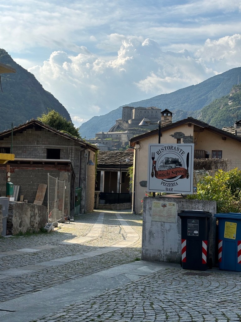 About 3 hours into our hike this morning we enter the town of Hone (population 1,142) and grab a bite to eat. As we enter the town center and begin to set our eyes on the Bard Fortress and Borgo Di Bard village (population 117), we begin to walk along the beautiful Fiume Ayasse running through this delightful town. This is the first legitimate waterway we’ve encountered that did look like a Chik-fil-A milkshake.