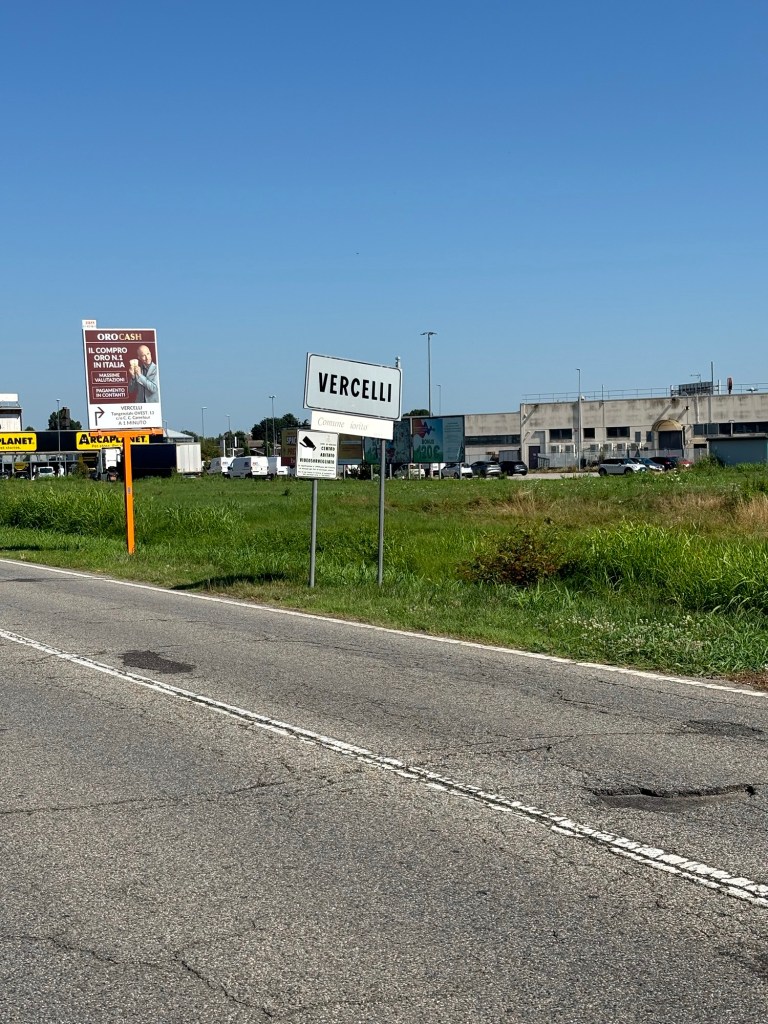 Today began early at 6:00 a.m., alone for the first morning of the trip so far as my friend Gabe slept in a hotel up the road in Milan. The early start was needed to get ahead of the heat as much as possible on a very lengthy day of planned hiking – nearly 40 kilometers. I chose the distance somewhat out of necessity as the only city with services and accommodations between Cavaglià and Vercelli is Santhia which is only 11.4 kilometers from Cavaglia which would have made for a very short hiking day. Additionally, I was hoping to avoid the forecasted rain on Sunday and take in a zero mileage/rest day on Sunday (tomorrow) in a comfortable, larger city as well. So, I decided to tack the remainder of Leg 8 of the hike (Cavaglia to Saythia) with an already challenging 27.5 kilometer hike of Leg 9 from Santhia to Vercelli in the farmlands and heat of the Italian summer.