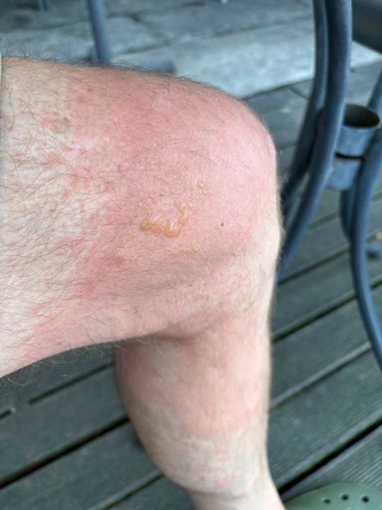 After a decent night of sleep and doses of ibuprofen pills and cream, my knee felt much better and ready for the kilometers ahead in Day 7. In addition to anti-inflammatory medicine, I decided to add extra support to my knee with a neoprene knee wrap I packed in the event knee trouble arose. I’m happy to report my knee held-up well under the stress of the lengthy hike, but I received an unintended consequence from the neoprene wrap: it doesn’t breathe. As a result of my body temperature rising significantly under the intense Italian heat and exertion from kilometer after kilometer of walking over 10 hours, I developed a second degree burn on my knee. A pharmacist around the corner from my B&B provided me with a cream and I’m caring for the wound to the inside of my left knee.