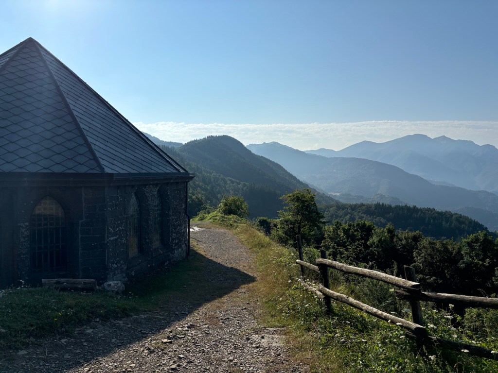 Alone, I made my way through the quiet streets of Berceto and onto the trail which began a pretty steady vertical climb shortly after leaving town. By 7:30 a.m., Iβve reached the highest point of the day at Monte Valoria and the panoramic views are amazing.