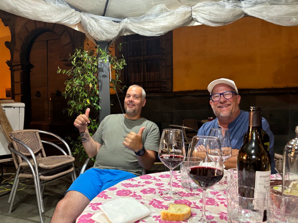 Enjoyed a final dinner with Mark and Gord before they depart for Florence tomorrow and then to their respective homes in Canada. They invited a pilgrim from Israel they met on the Via Francigena, Shim, to join us for dinner. Shim is hiking the trail solo with no specific timeline. She was very comfortable conversing in Italian, English and Spanish. I am sad to see Mark and Gord go. I was hoping for more time with them. Arrivederci my friends!