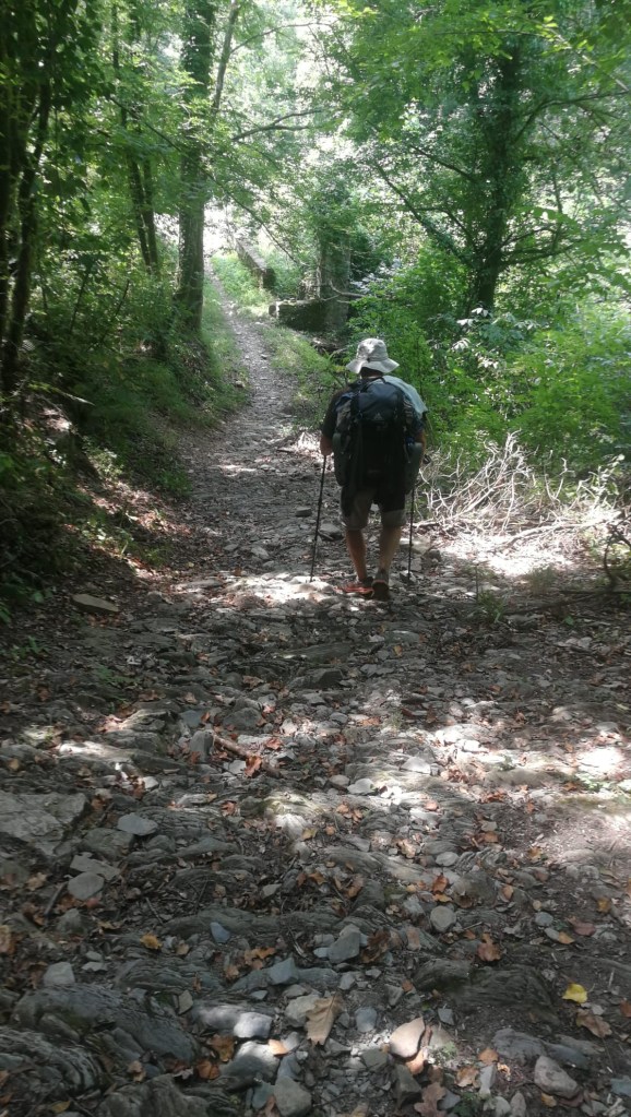 I departed Pontremoli an hour later (at 6:30 a.m.) than I would have preferred. Ignatio wanted to leave a bit later than my normal time and I agreed thinking I would be able to grab a brioche and macchiato at that later hour (my B&B host provided a breakfast voucher to a spot in the main piazza and said it opened at 6:00 a.m.). Unfortunately, the later time didn’t deliver any coffee or brioche as nothing was open at 6:30 a.m., including the place referenced by my host (it opened at 8:00 a.m.). So, my day started later and was expecting very little in the way of “services” all day. Nonetheless, it was a beautiful day and we were expecting a long, tough day of hiking.